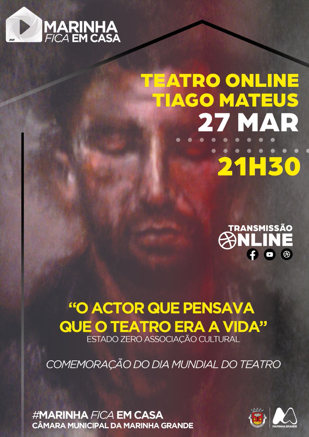 Teatro online . “O Actor que pensava que o teatro era a vida” . #marinhaficaemcasa