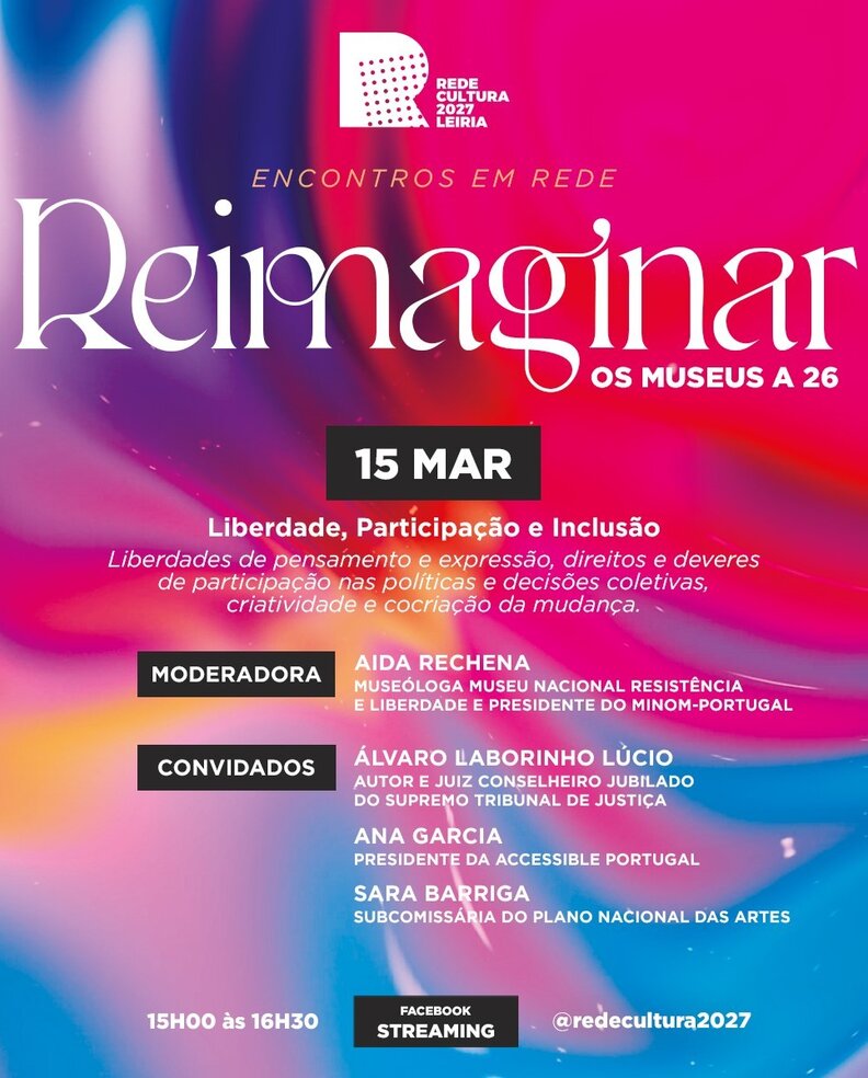 Na próxima segunda-feira, dia 15 de Março, às 15h00, terá lugar o segundo webinar deste ciclo para refletir sobre Museus, liberdade, participação e inclusão. A emissão poderá ser acompanhada na página de facebook da Rede Cultura 2027.