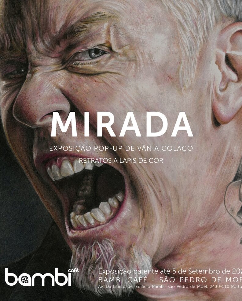 “MIRADA” é uma exposição “pop-up” constituída por retratos realistas a lápis de cor. Apresentados sob a forma de reproduções dos trabalhos originais, selecionados de uma série temática ainda em desenvolvimento.