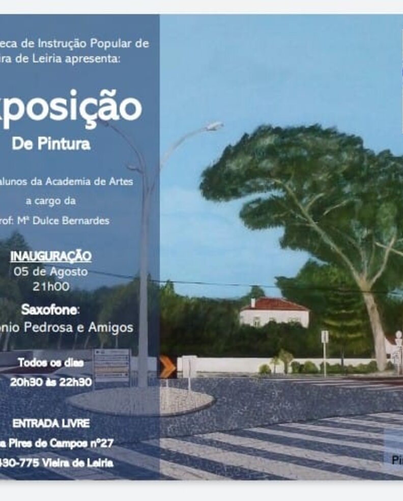 A Biblioteca de Instrução Popular, em Vieira de Leiria, tem patente de 5 a 31 de agosto, a Exposição de Pintura, pelos alunos da Academia de Artes da Bip, a cargo da professora Maria Dulce Bernardes.