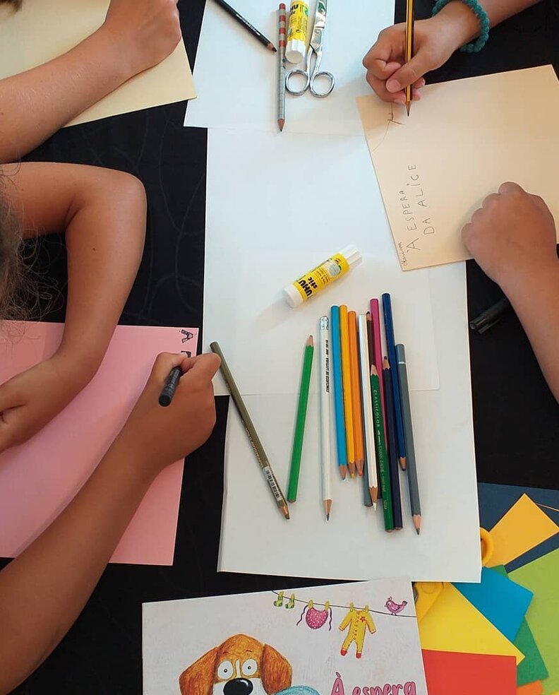 Criação de uma história e respetivas ilustrações. São abordados temas como cor, forma, estrutura de uma história, criação de personagens e cenários. A história criada e ilustrada pelas crianças, é paginada pela ilustradora e enviada em formato pdf para os Pequenos Autores Ilustradores.