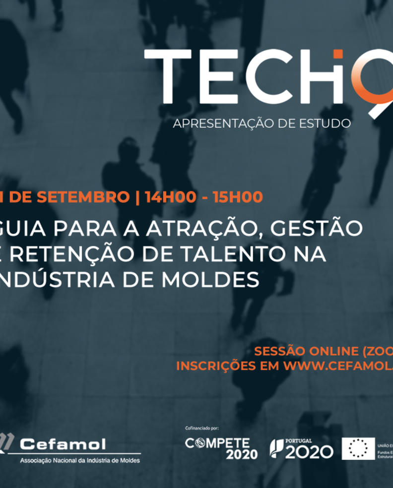 «Guia para a atração, gestão e retenção de talento na indústria de moldes» é o título do novo estudo realizado no âmbito do Projeto TECH-i9, a ser apresentado no próximo dia 21 de setembro, entre as 14h00 e as 15h00, através da plataforma Zoom.