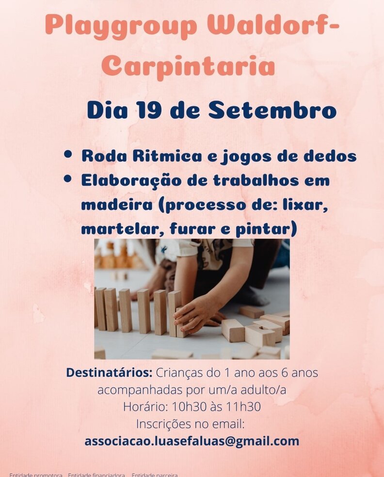 No âmbito do projeto Lua do Brincar, promovido pela Associação Luas&Faluas, vimos dar-vos a conhecer a atividade que vai realizar-se no dia 19 de Setembro: Playgroup Waldorf- Carpintaria.