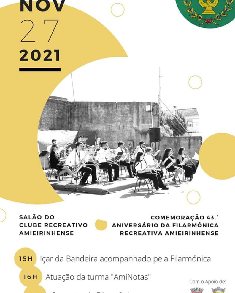 No próximo dia 27 de novembro, a Filarmónica Recreativa Amieirinhense comemora o 43.º Aniversário da sua fundação.