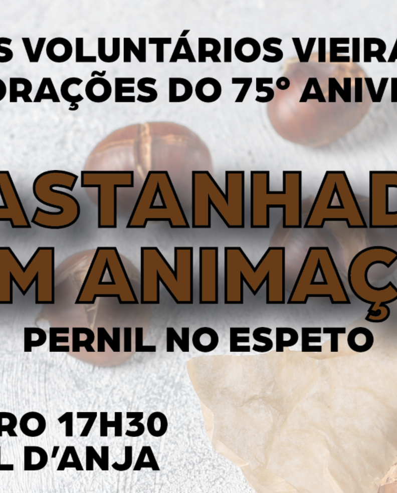 Participe na castanha organizada pelos Bombeiros Voluntários de Vieira de Leiria, no âmbito das comemorações do 75º aniversário daquela Associação Humanitária.