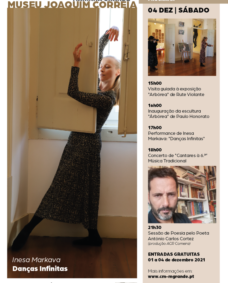 A partir da exposição de Rute Violante dedicada aos pinheiros serpentes da Mata Nacional de S. Pedro de Moel, patente no Museu Joaquim Correia, nasce uma performance coreográfica em diálogo com o espaço do Museu e conteúdos da exposição «Arbórea». O público é convidado a mergulhar em imagens, através da linguagem não verbal do corpo em movimento e da música. A performance procura reimaginar os lugares e as memórias coletivas sobre uma das florestas plantadas mais antigas de Portugal.