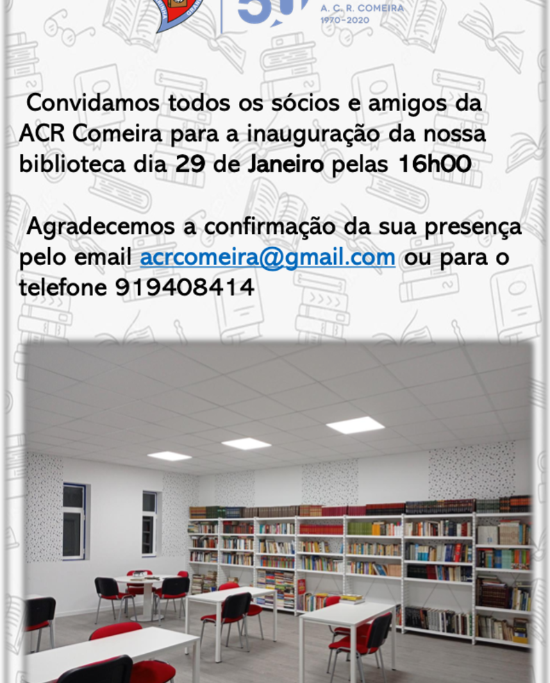 A Associação Cultural e Recreativa da Comeira inaugura a sua biblioteca, este sábado, 29 de janeiro, pelas 16h00.