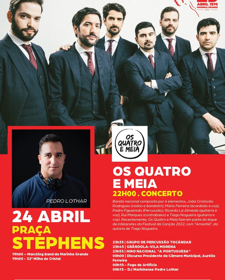 22h00 – CONCERTO COMEMORATIVO DO 25 DE ABRIL, COM A BANDA OS QUATRO E MEIA