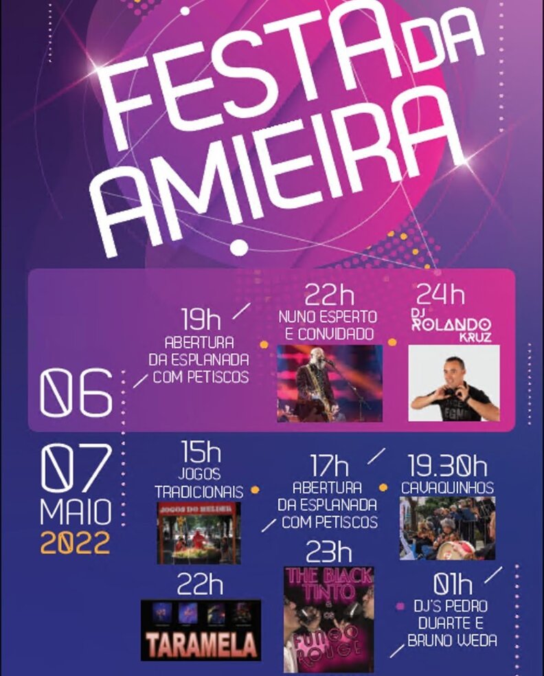 Festa Anual da Amieira, que se realizará nos dias 6 e 7 de Maio de 2022.