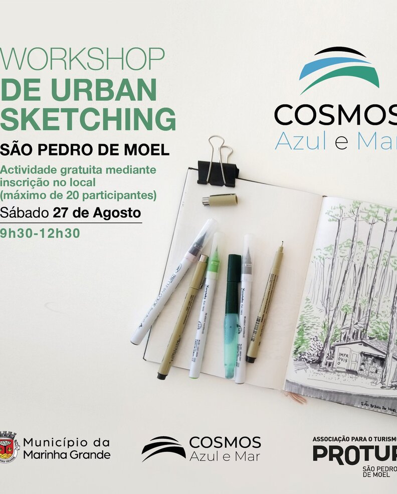 O Edifício Cosmos Azul e Mar, situado na rua Dr. Adolfo Leitão, em São Pedro de Moel, vai receber o Workshop de Urban Sketching, no dia 27 de agosto (sábado), das 9h30 as 12h30.