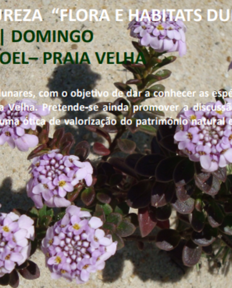 Passeio guiado aos habitats dunares, com o objetivo de dar a conhecer as espécies de flora e habitats presentes na Praia Velha. Pretende-se ainda promover a discussão relativa às ameaças e potencia- lidades numa ótica de valorização do património natural e desenvolvimento sustentável.