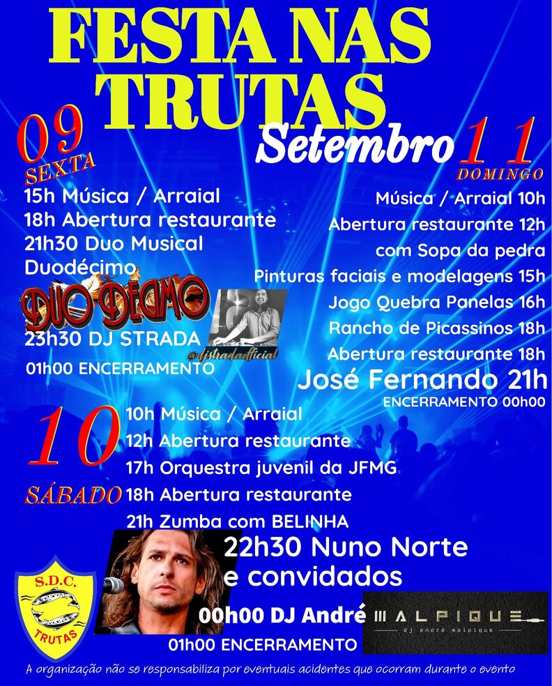 Festa nas Trutas, nos dias 9, 10 e 11 de setembro de 2022.