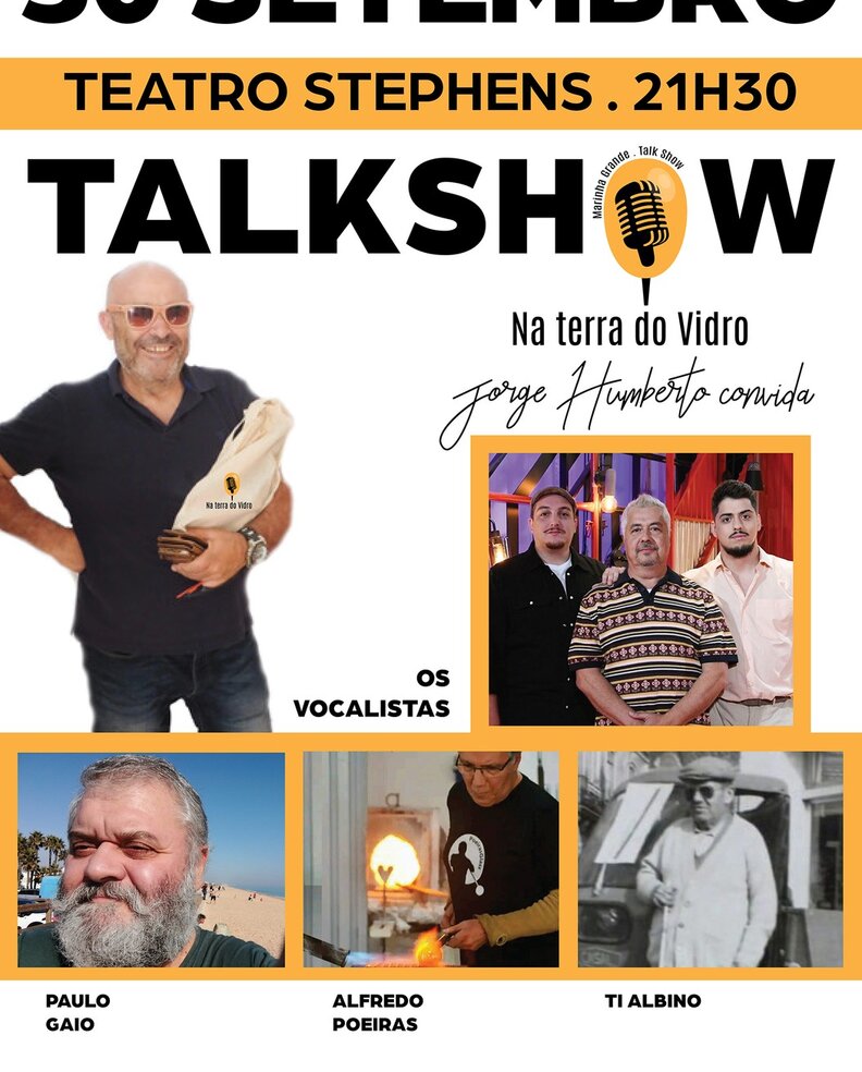 O próximo Talk Show da Série “Na Terra do Vidro, Jorge Humberto convida” realiza-se no dia 30 de setembro (sexta-feira), pelas 21h30, na Casa da Cultura Teatro Stephens, na Marinha Grande.