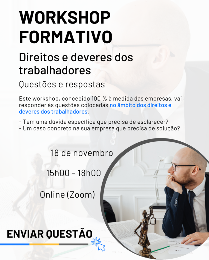 Este workshop será realizado online, no dia 18 de novembro, entre as 15h00 e as 18h00 (valor de Associado: 60 € / valor de não Associado: 90 €).
