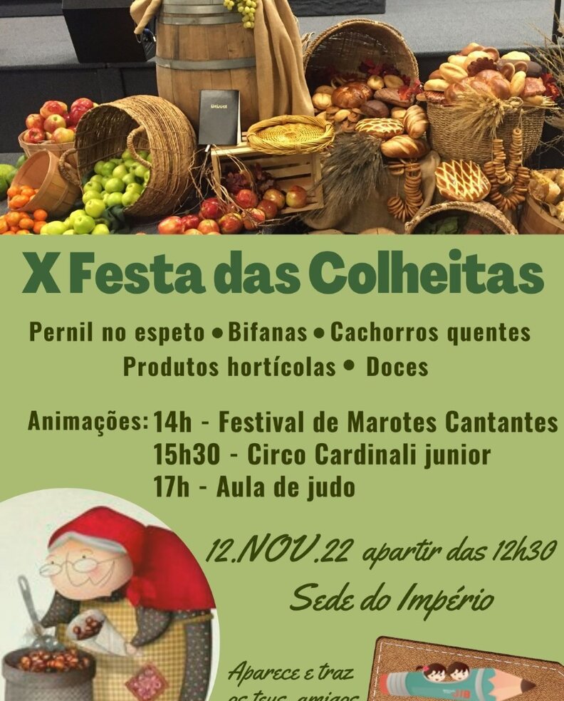 A 12 de novembro tem lugar a X Festa das Colheitas, a partir das 12h30, na sede do Sport Império Marinhense.