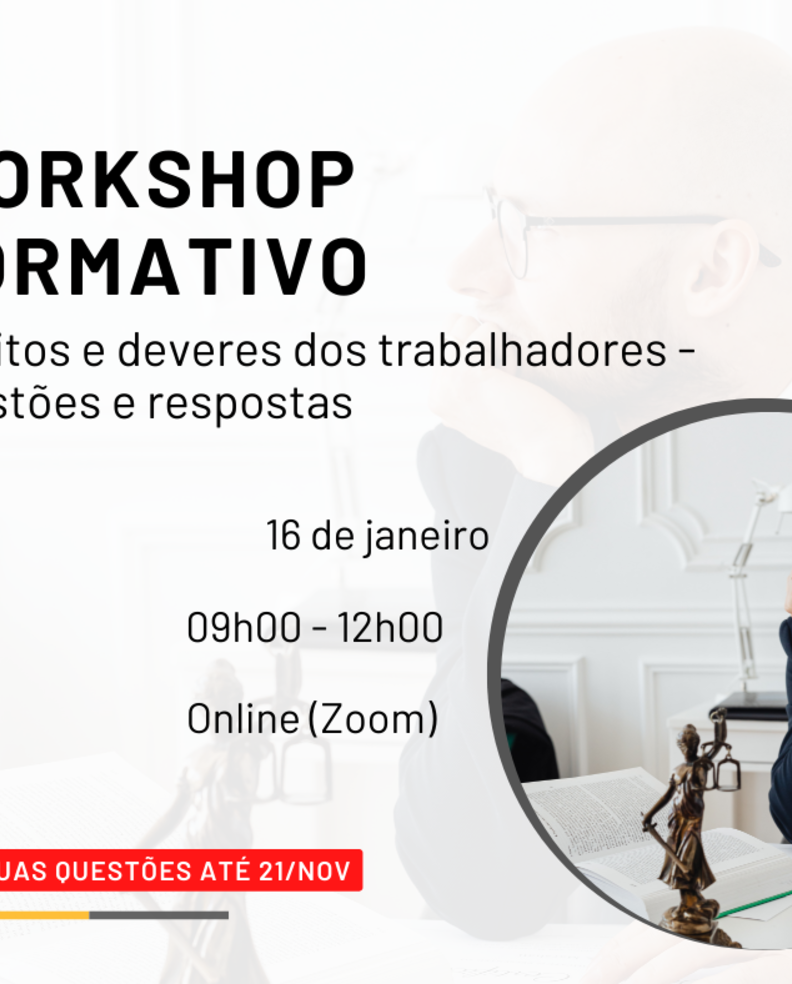 Este workshop será realizado online, via Zoom, no dia 16 de janeiro, entre as 09h00 e as 12h00 (valor de Associado: 40 € / valor de não Associado: 70 €).