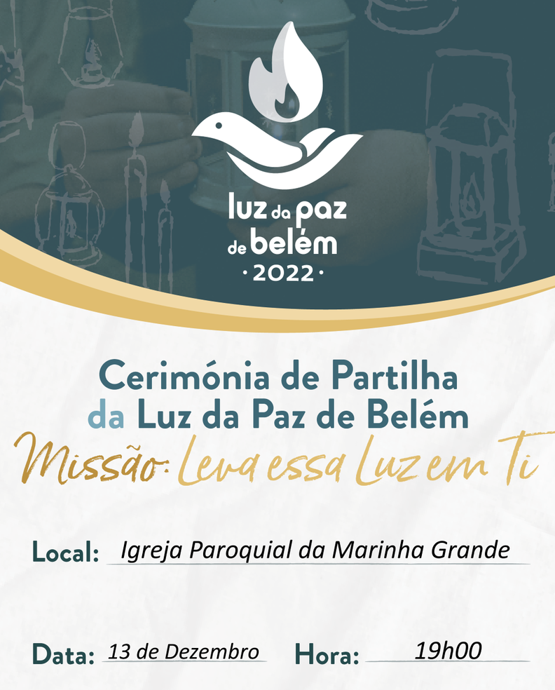 Tem lugar a 13 de dezembro de 2022, pelas 19h00, na Igreja Paroquial da Marinha Grande, a Cerimónia de Partilha da Luz da Paz de Belém.