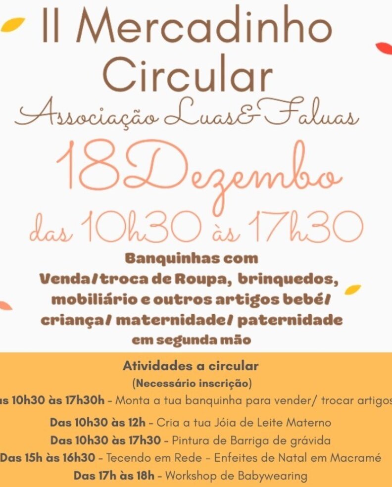 Este Mercadinho terá banquinhas de pessoas da comunidade que queiram vender ou trocar os seus artigos em segunda mão relacionados com bebés/ crianças/ maternidade/ paternidade e tem como objetivos promover a reciclagem e a economia circular de roupas e outros artigos ligados à Maternidade/ Paternidade, assim como envolver e dinamizar a comunidade.