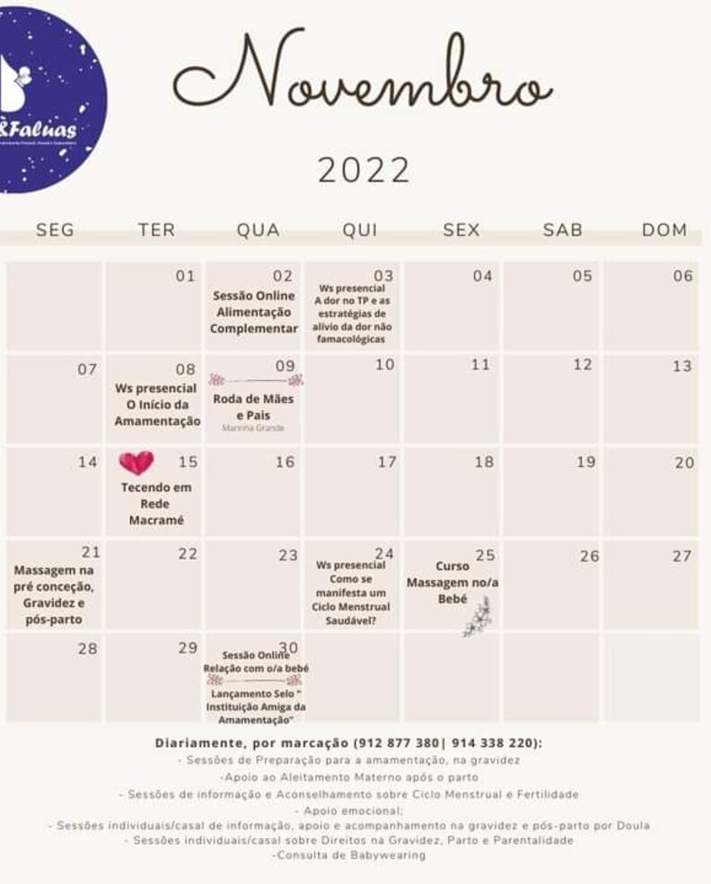AGENDA DE JANEIRO DA ASSOCIAÇÃO LUAS E FALUAS