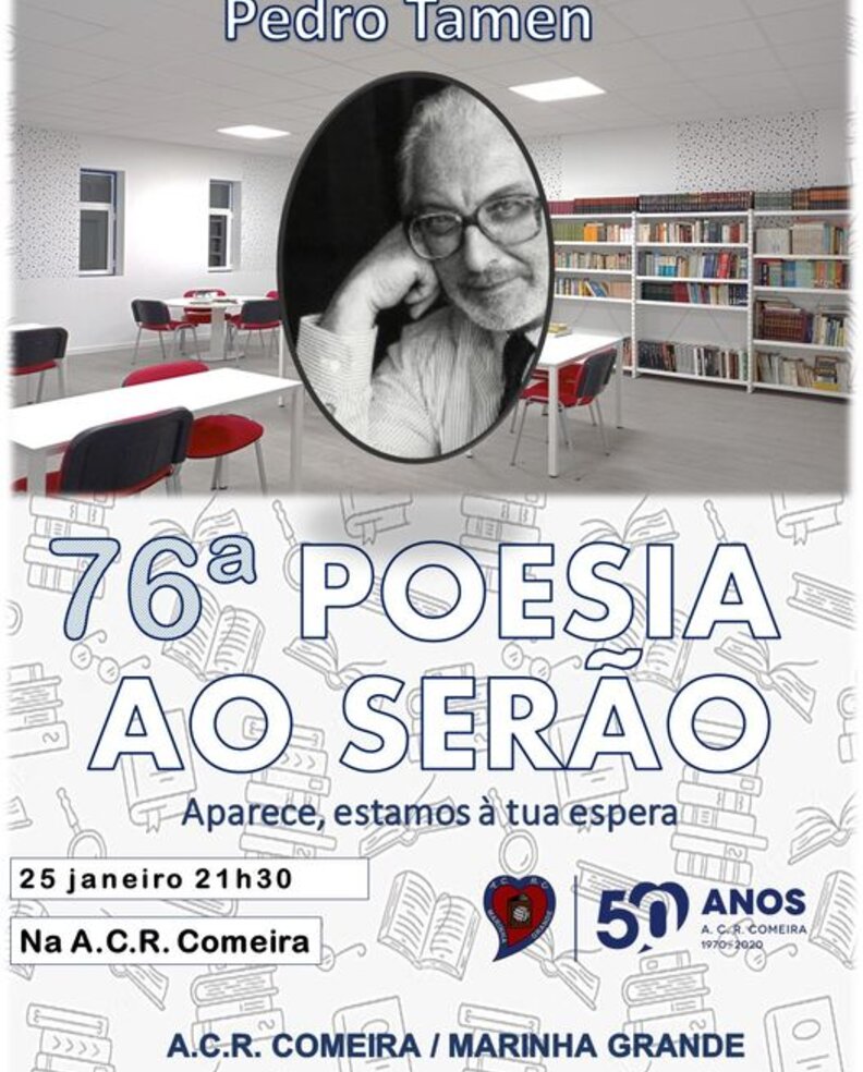 A 25 de janeiro, pelas 21h30, decorre a 76ª sessão de Poesia ao Serão, na A.C.R. Comeira, com a presença do poeta Pedro Tamen.