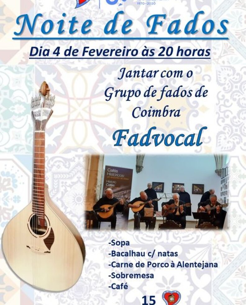 Decorre a 4 de fevereiro, às 20h, uma Noite de Fados na A.C.R. Comeira. Terá lugar um jantar com o grupo de fados de Coimbra "Fadvocal".