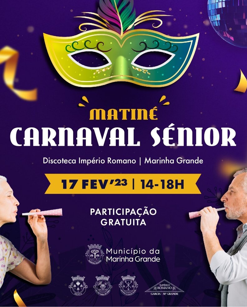 No dia 17 de fevereiro, das 14h00 às 18h00, e numa iniciativa pioneira no concelho, é promovida a Matiné de Carnaval Sénior na Discoteca Império Romano, para a população com mais de 65 anos. Com esta iniciativa, pretende-se promover o envelhecimento saudável através do convívio e proporcionar um dia divertido e alegre aos idosos do concelho. A inscrição gratuita dos grupos deve ser feita através do link https://forms.office.com/e/t5DUrALsLy