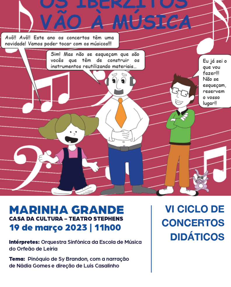 Decorre a 19 de março, no âmbito do VI Ciclo de Concertos Didáticos, "Os Iberzitos vão à Música", na Casa da Cultura - Teatro Stephens, por volta das 11h00.