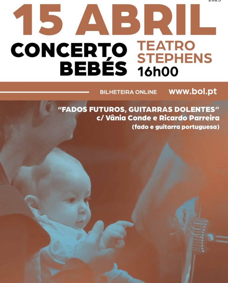 A Casa da Cultura - Teatro Stephens, na Marinha Grande, apresenta o Concerto para Bebés “Fados futuros, guitarras dolentes”, com a participação dos convidados Vânia Conde e Ricardo Parreira (fado e guitarra portuguesa), no dia 15 de abril , pelas 16h00.