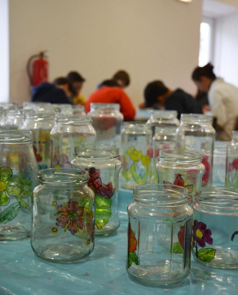 A partir da visita às salas de decoração em vidro da exposição temporária do Museu do Vidro, as crianças têm a oportunidade de aprender a técnica de pintura em vidro, utilizando materiais e tintas próprias para o vidro. De forma a incentivar a reutilização de materiais, cada criança deve trazer um frasco de vidro.