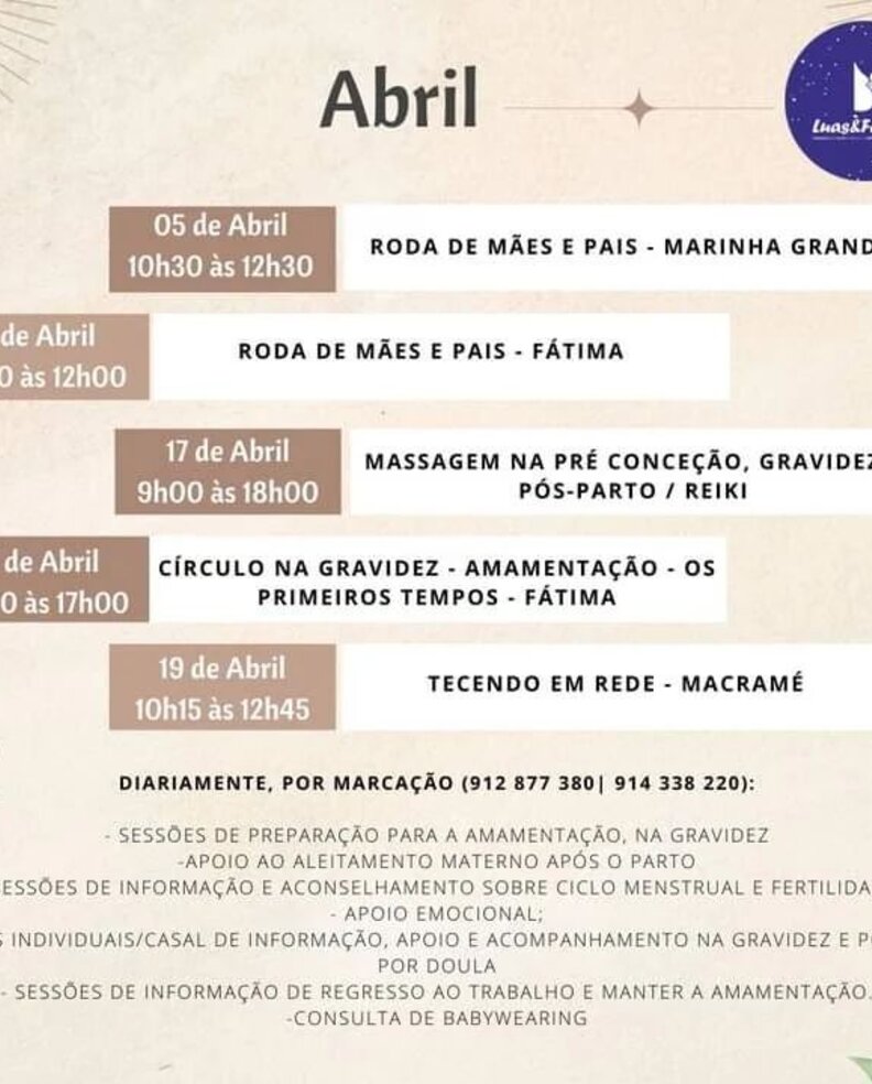 AGENDA DE ABRIL DA ASSOCIAÇÃO LUAS E FALUAS