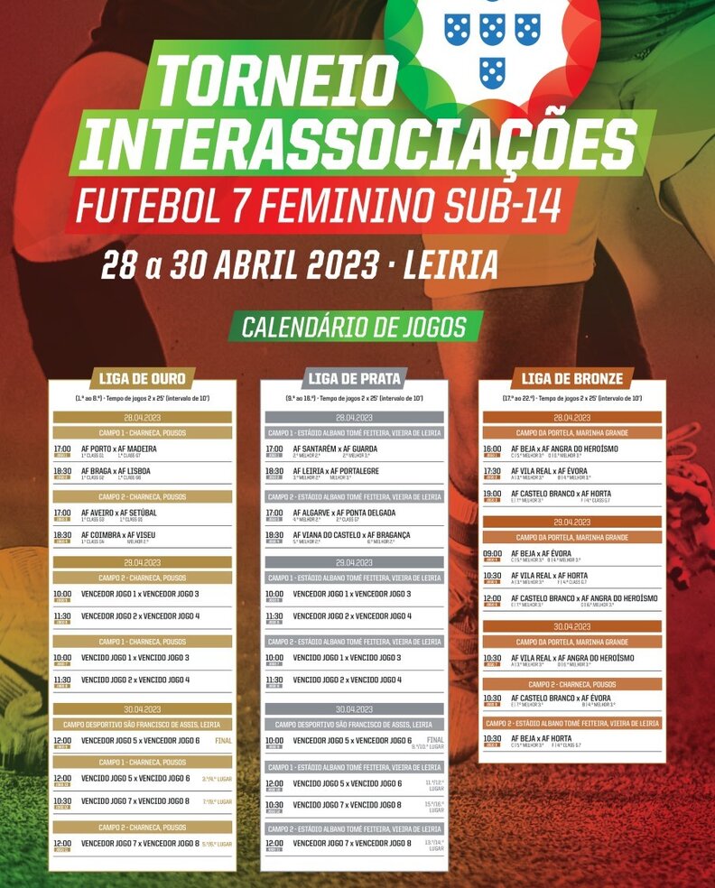 De 18 a 30 de abril de 2023, realiza-se, em Leiria, o Torneio Interassociações de Futebol de 7 Feminino Sub-14.