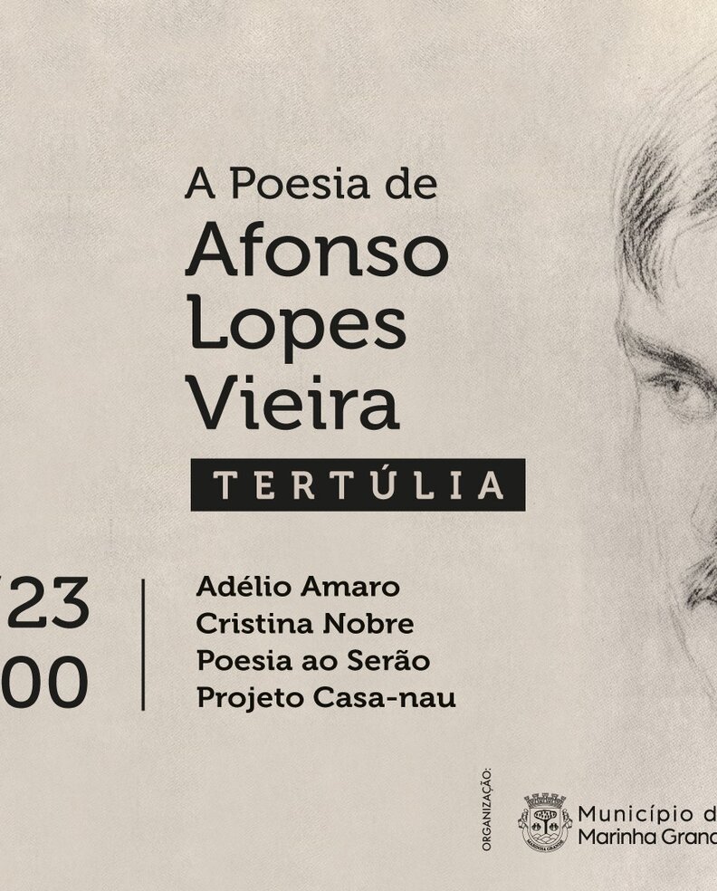 O Museu Joaquim Correia realiza a Tertúlia “A poesia de Afonso Lopes Vieira”, no próximo sábado, 29 de abril de 2023, pelas 15h00, numa organização do Município da Marinha Grande e da Associação Cultural e Recreativa da Comeira, cuja entrada é gratuita.