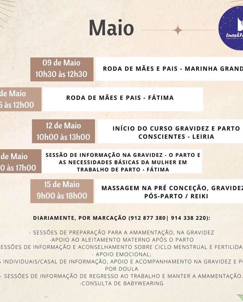 AGENDA DE MAIO DA ASSOCIAÇÃO LUAS E FALUAS