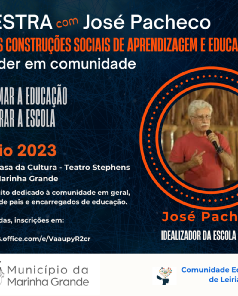No dia 16 de maio de 2023, entre as 18h30 e as 20h00, terá lugar na Casa da Cultura - Teatro Stephens, uma palestra com o Professor José Pacheco, idealizador da Escola da Ponte.