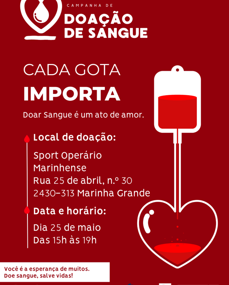 A 25 de maio tem lugar no Sport Operário Marinhense uma campanha de doação de sangue, entre as 15h e as 19h.