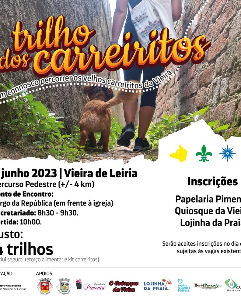 Tem lugar a 4 de junho de 2023 o Trilho dos Carreiritos, na Vieira de Leiria. O Percurso Pedestre tem aproximadamente 4km.