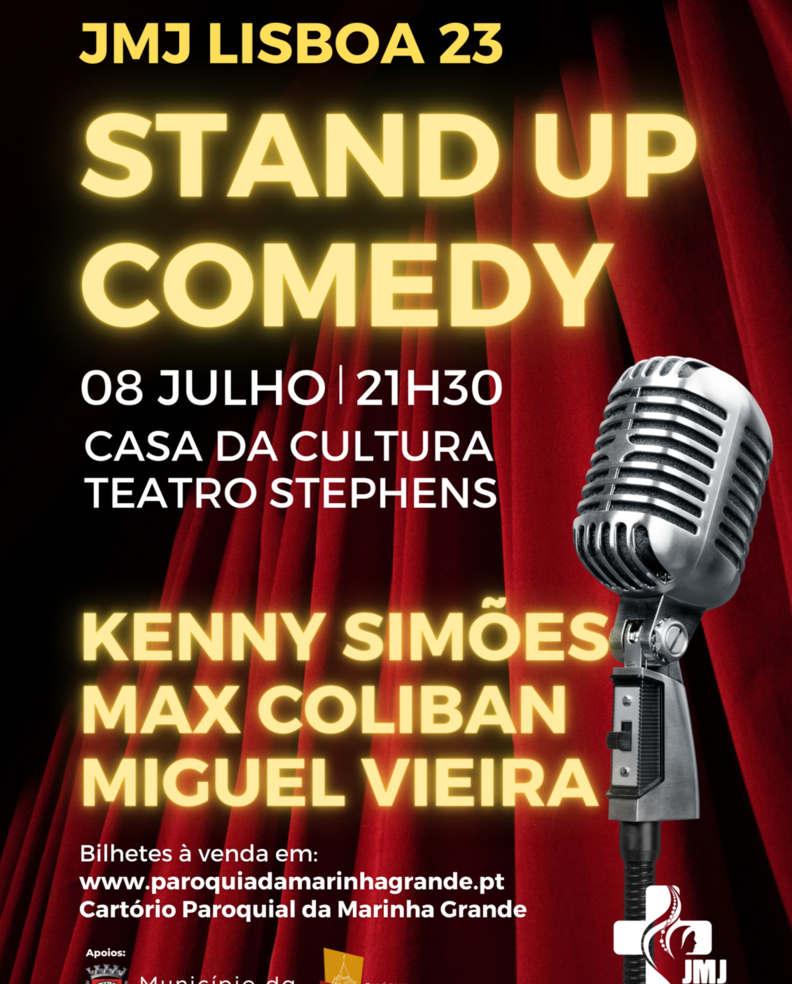 Tem lugar a 8 de julho, pelas 21h30, um espetáculo de Stand Up Comedy na Casa da Cultura Teatro Stephens, no âmbito da Jornada Mundial da Juventude Lisboa 2023.
