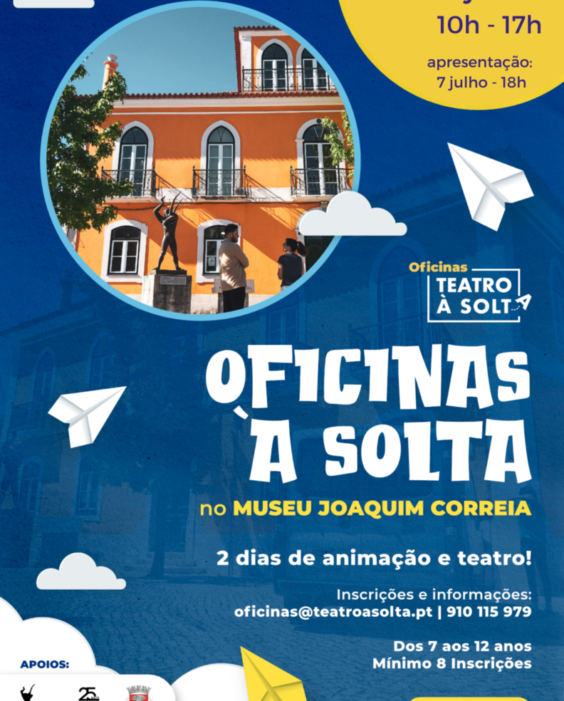 Nos dias 6 e 7 de julho, entre as 10h e as 17h, o Museu Joaquim Correia e o Teatro à Solta juntam-se para proporcionar aos mais novos mais uma edição das Oficinas à Solta, para que possam aprender mais sobre teatro e expressão dramática. É uma aventura de dois dias pelo mundo do Teatro, onde as crianças podem criar a história e as personagens de um mini espetáculo com apresentação pública acessível a todos os que queiram assistir. As novas aprendizagens estão garantidas. A diversão, também!