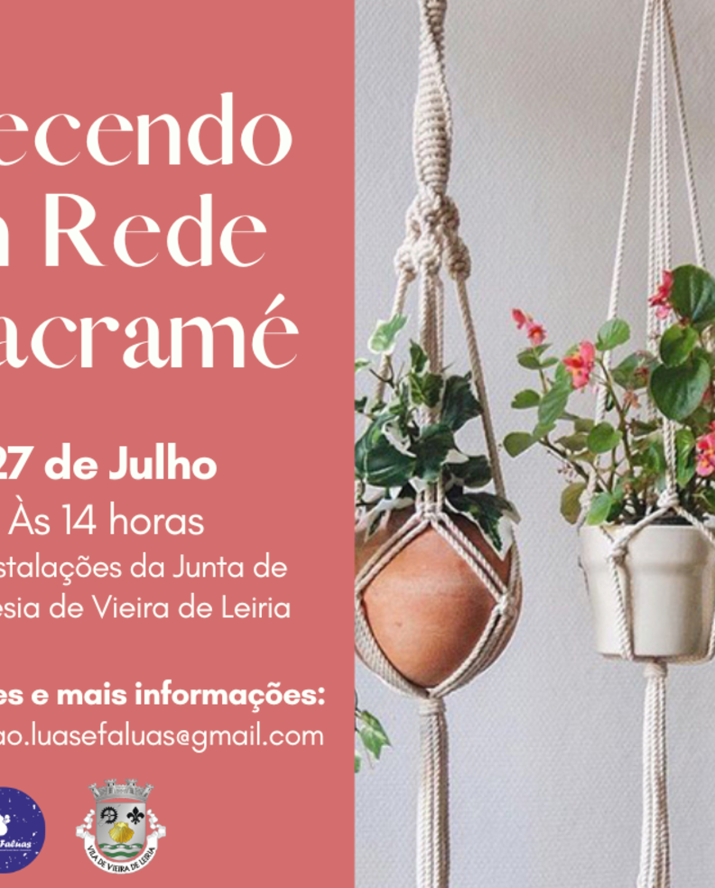 "Tecendo em Rede Macramé" ocorre a 27 de julho, entre as 14h00 e as 17h00, nas instalações da Junta de Freguesia de Vieira de Leiria.
