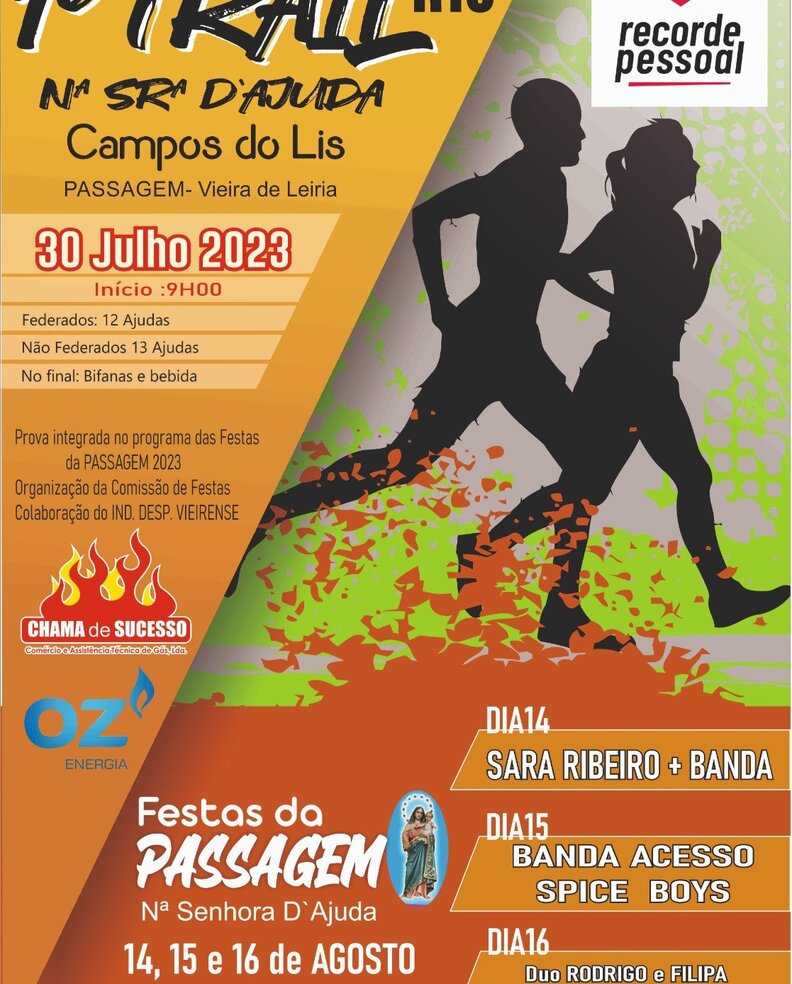 No dia 30 de julho, às 9h00, nos Campo do Lis, em Passagem, Vieira de Leiria, acontecerá o 1º Trail Nossa Senhora D´ Ajuda. Esta prova está integrada no programa das Festas da Passagem 2023, com organização da Comissão de Festas e a colaboração do Industrial Desportivo Vieirense.