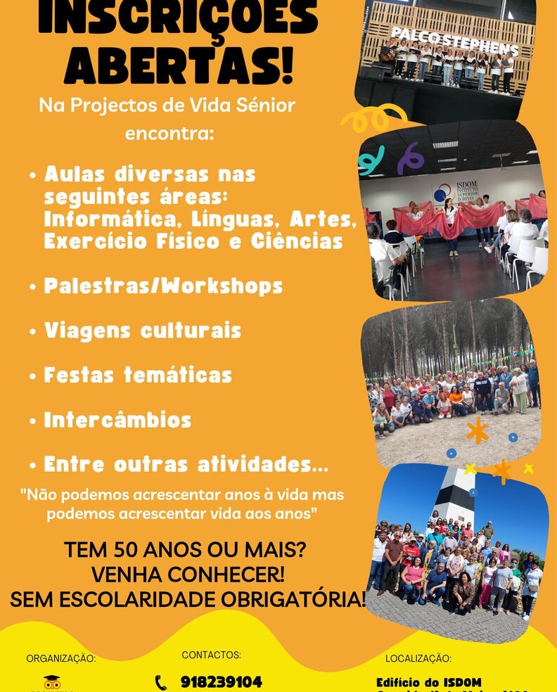 PROJECTOS DE VIDA SÉNIOR TEM INSCRIÇÕES ABERTAS