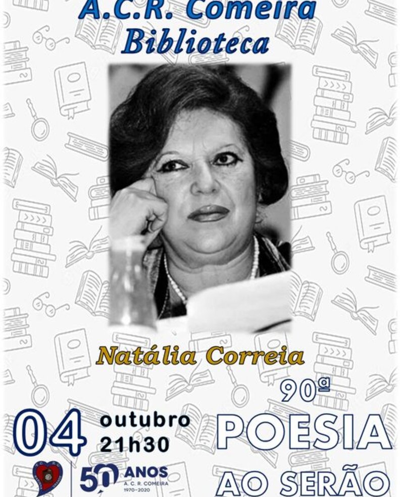 A 4 de outubro, pelas 21h30, na Biblioteca da A.C.R. Comeira, decorre a 90ª Poesia ao Serão, dedicada a Natália Correia.