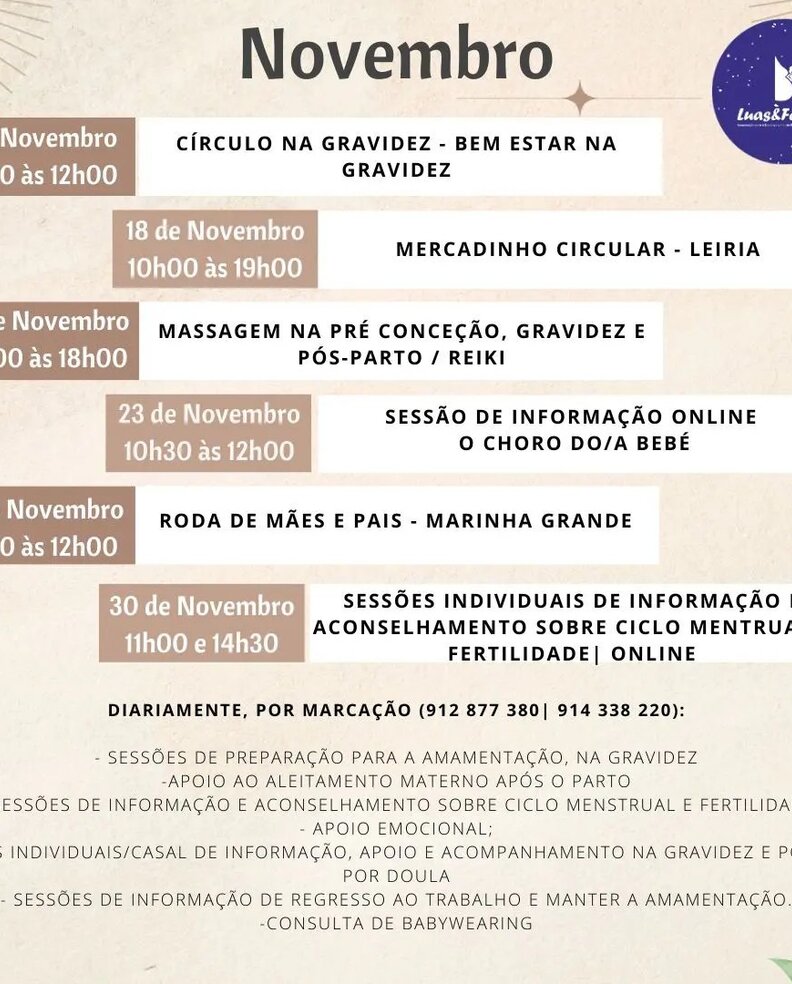 - Sessões individuais/casal de informação, apoio e acompanhamento na gravidez e pós-parto por Doula