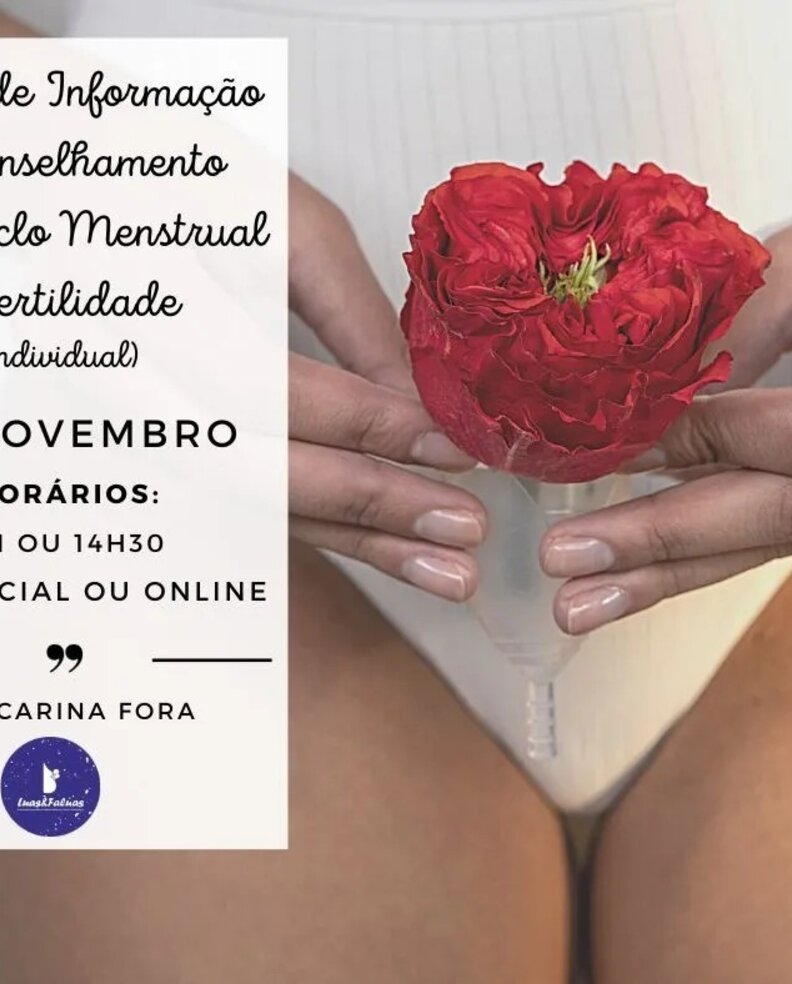 Dia 30 de novembro, há 2 Sessões individuais de Informação e Aconselhamento sobre Ciclo Menstrual e Fertilidade (online) com a Carina Fora.