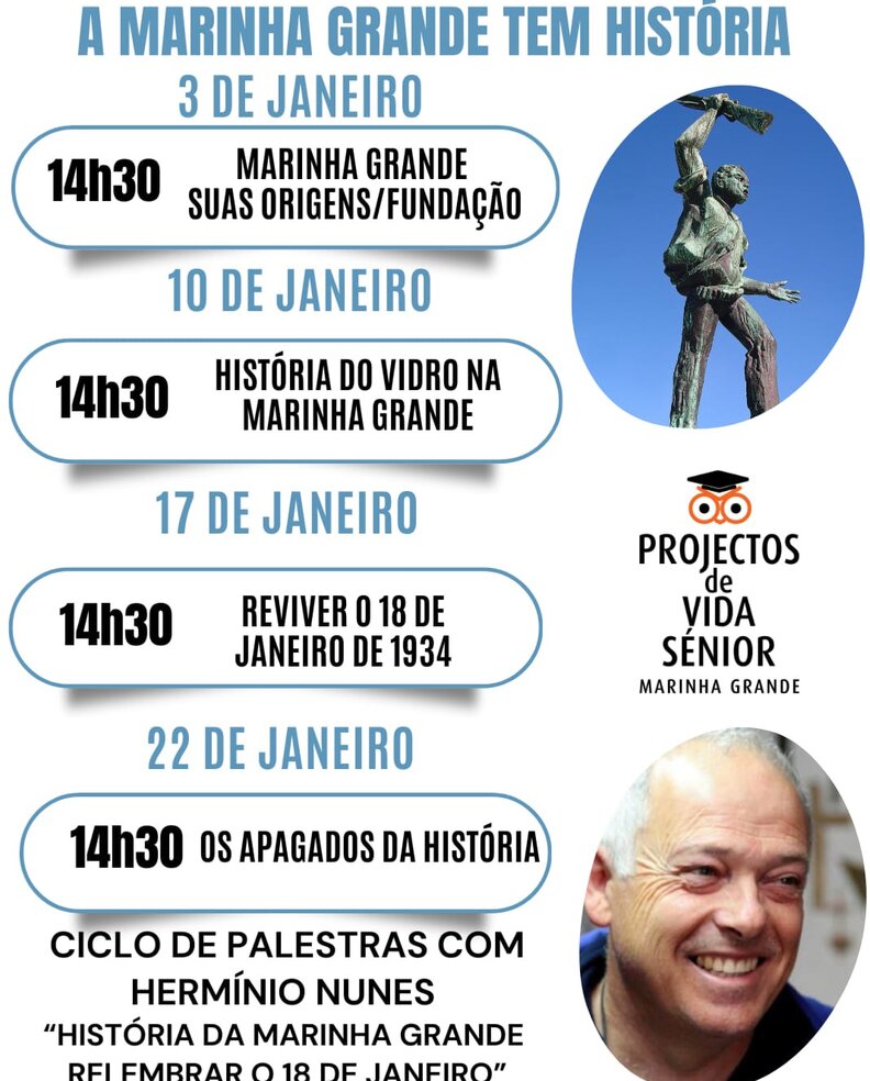 A Projectos de Vida Sénior convida a comunidade para o ciclo de palestras, proporcionado pelo Historiador, Hermínio Nunes, que visa assinalar os 90 anos do 18 de janeiro de 1934.