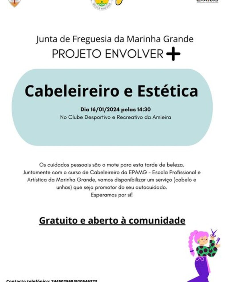 Os cuidados pessoais são o mote para esta tarde de beleza. Juntamento com o curso de Cabeleireiro da EPAMG - Escola Profissional e Artística da Marinha Grande, vamos disponibilizar um serviço (cabelo e unhas) que seja promotor do seu autocuidado