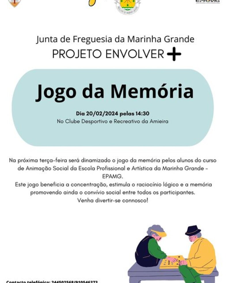 Na próxima terça-feira será dinamizado o jogo da mempória pelos alunos do curso de Animação Social da Escola Profissional e Artística da Marinha Grande - EPAMG.