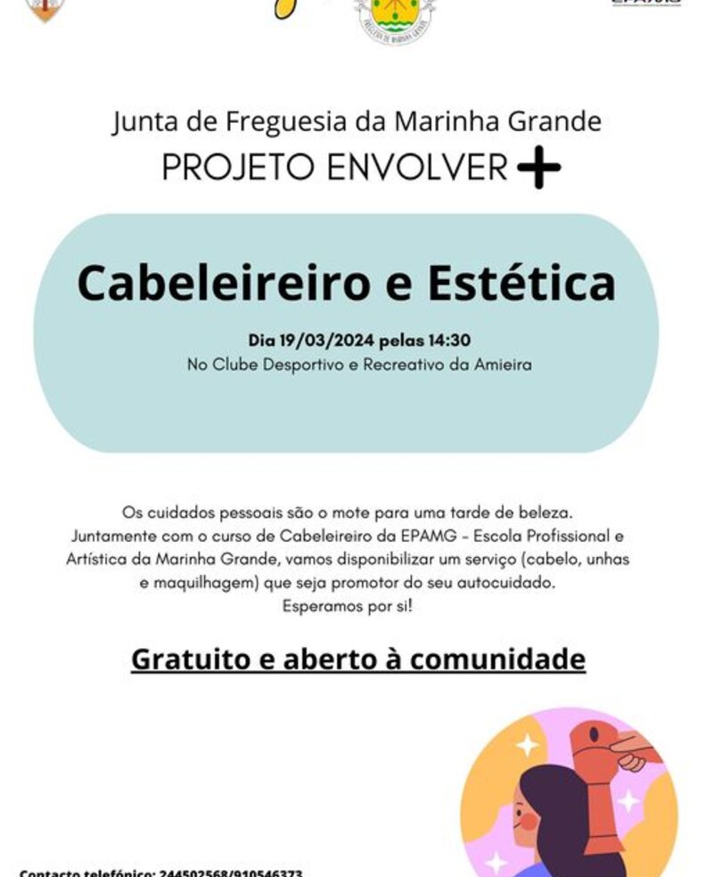 Juntamente com o curso de Cabeleireiro da EPAMG - Escola Profissional e Artística da Marinha Grande, vamos disponibilizar um serviço(cabelos, unhas e maquilhagem) que seja promotor do seu autocuidado. Esperamos por si!