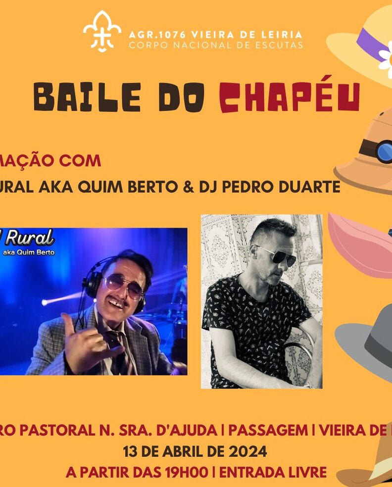 A animação do Baile do Chapéu está a cargo do DJ Rural (aka Quim Berto) e do DJ Pedro Duarte! 🤩