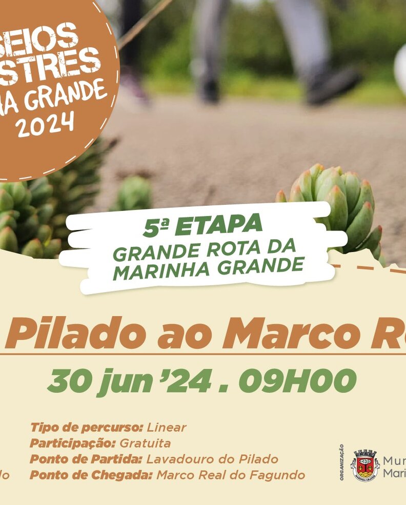 No próximo dia 30 de junho, pelas 09h00, é organizada mais uma etapa do percurso pertencente à Grande Rota da Marinha Grande, com ligação “Do Pilado ao Marco Real”, que terá a extensão de 10 km e a duração de 3 horas, por piso arenoso e alcatroado, com grau de dificuldade moderado.
